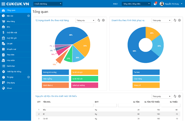 - Tự động tính toán và cập nhật giá vốn cho món ăn, giúp chủ quán có thể xây dựng chính sách giá hợp lý