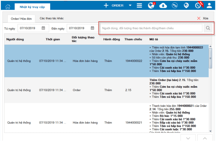 Sửa, in lại, xóa tạm tính hoặc hóa đơn cần có sự xác nhận của quản lý hoặc