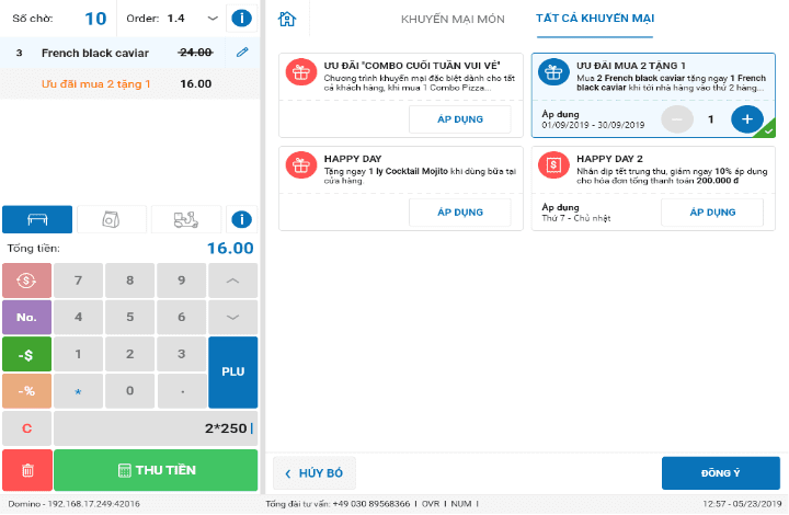 - Hình thức khuyến mãi: Tặng món, giảm giá món, giảm giá hóa đơn, mua món tặng món, mua món giảm giá món…